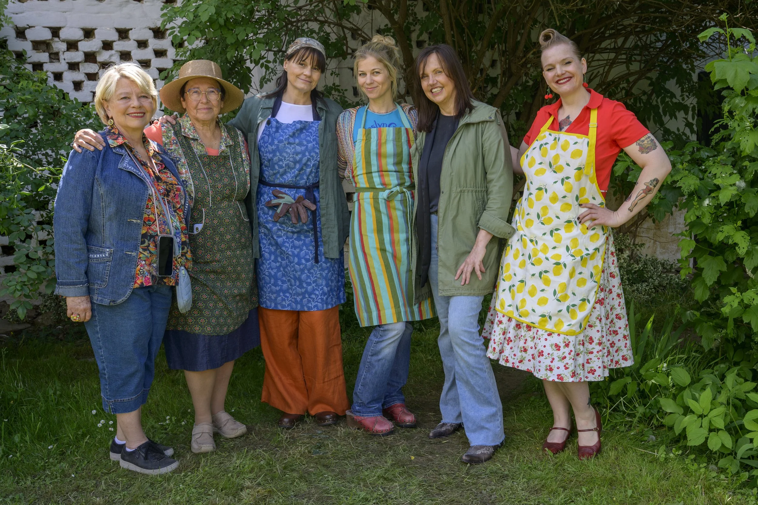 Bild unten links. Der Klub der Grünen Daumen: Margarethe Tiesel (Oma Hilda), Ingrid Singer (Mitzi), Eva-Maria Marold (Johanna), Hilde Dalik (Vera), ich und Corinna Pumm (Mathilde).